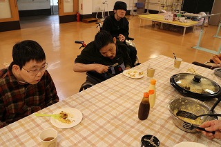 前年度がお菓子ばかりだったので思考を変え、しっかりとした食事系にも挑戦! 自分たちで作った焼きたてのお好み焼きはとてもおいしかったです。
