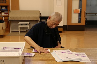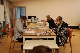 グレイスホームでは法人で発行している広報誌「一粒の麦」 の封入と発送の作業を行なっています。作業に協力してくれる利用者が追加紙面の挟み込み、三つ折り、封筒に入れて封を閉じる、宛名を貼るなどの作業を行なっています。なかなか上手く出来ないこともありますが、毎回真剣に作業に取り組んでいます。