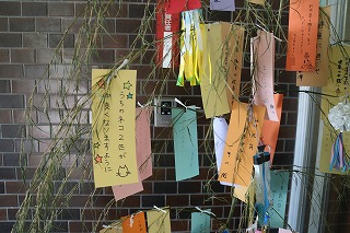 7月、七夕の願い事☆玄関先に飾りました。今年は特にコロナもおちつき、外出が始まった分、みなさん外出の希望が多く書かれていました。